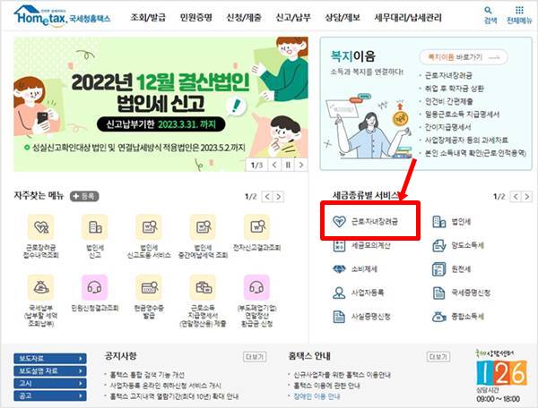 ⭐ 자녀장려금 신청도 같은 방법으로 신청이 가능합니다.